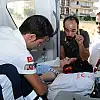 Burada sağlık ekiplerinin kontrolünde sedye ile ambulans helikoptere taşınan Kaya, kendisini uğurlamaya gelen yakınlarına el sallayarak tebessüm etti.