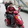 Hediye edilen akülü araca binerek süren Sevda Tuncay’ın mutluluğu gözlerinden okundu.