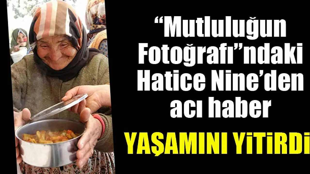 Konya Hasan Dudu aşevinden 15 yıl önce yemek alırken elinde tuttuğu kaba gülümsediği, AA muhabirinin çektiği "Mutluluğun Resmi" fotoğrafıyla hafızalarda yer edinen Hatice nine 77 yaşında yaşamını yitirdiği öğrenildi.