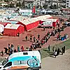 Eğriçayır Çadır Kenti'nde oyuncakları dağıtan teşkilat üyeleri, çeşitli kostümler giyerek, depremzede çocuklarla oyunlar oynadı.