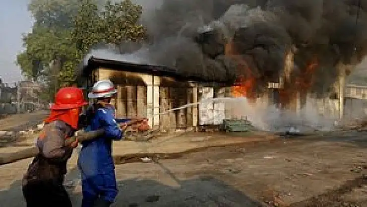 Myanmar'ın Yamethin kentinde Müslümanlara yönelik şiddet olayları artarken 2 cami ve 50 ev ateşe verildi.