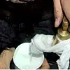 Namaz sonrası vatandaşlara süt ikram ediliyor