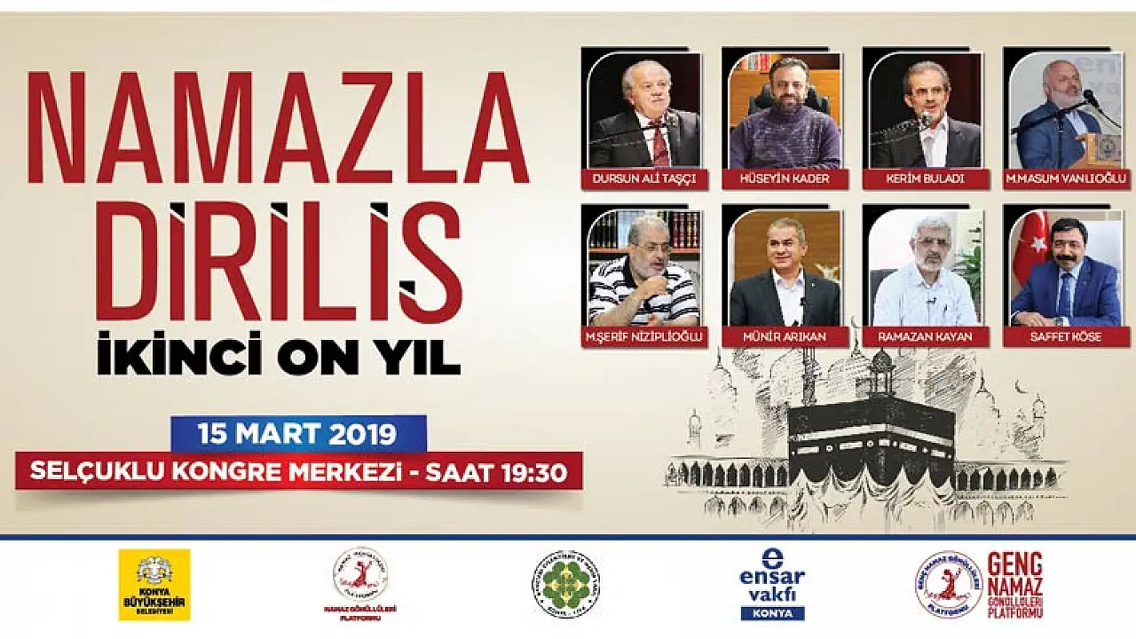 Namaz Gönüllüleri Platformu, Gençleri Evlendirme ve Mehir Vakfı, Ensar Vakfı Konya Şubesi ve Genç Namaz Gönüllüleri Platformu'nun ortaklaşa düzenlediği, Konya Büyükşehir Belediyesi'nin destek verdiği "Namazla Diriliş" konferansı, 15 Mart Cuma günü saat 19.30'da Selçuklu Kongre Merkezi'nde gerçekleştirilecek. Konferansa Ensar Vakfı Genel Müdürü Hüseyin Kader, İzmir Katip Çelebi Üniversitesi Rektörü Prof. Dr. Saffet Köse, Prof Dr. Kerim Buladı, İmam Ebu Hanife ve İmam Maturidi Araştırma Vakfı Başkan Vekili Muhammet Masum Vanlıoğlu, Düşünce Koçu Münir Arıkan, Araştırmacı-Yazar Ramazan Kayan, Yazar Dursun Ali Taşçı ve Mehmet Şerif Niziplioğlu konuşmacı olarak katılacak.