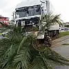 Narenciye yüklü TIR'ı refüjeki palmiye durdurdu