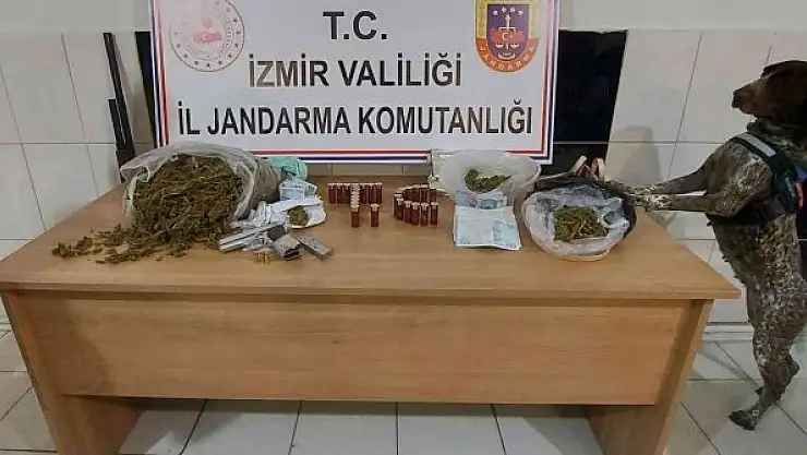 İzmir'in Torbalı ilçesinde bir adrese baskın düzenleyen jandarma ekipleri, narkotik dedektör köpekleriyle yapılan aramada 1 kilogramın üzerinde uyuşturucu madde ele geçirdi. Olayla ilgili 2 şüpheli gözaltına alındı.