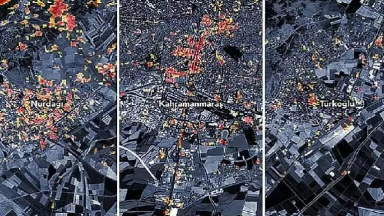 Black Marble HD ile çekilen görüntülerde Antakya'nın büyük bir kesiminin karanlığa büründüğü görünürken Kahramanmaraş ve Adıyaman'ın da karanlıkta kaldığı belirtildi.