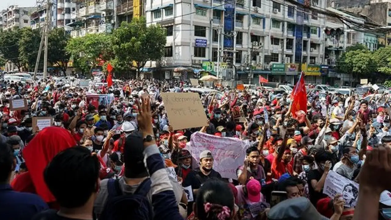 Hiljade ljudi izašle su na ulice Yangona i Patheina. Demonstranti, među kojim su većinom bili budistički svećenici, radnici i studenti, protestuju već tri dana u znak protesta protiv puča.