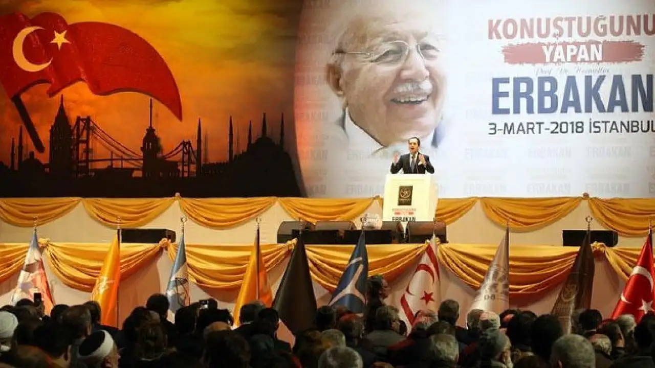 Erbakan konuşmasının sonunda 'milli görüş yemini' etti, salondaki vatandaşlar da yemini tekrarladı.