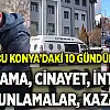 Konya'da son yılların en olaylı günleri meydana gelmeye başladı. Son 10 gündür cinayet, ölümlü kazalar, intihar, kavgalar, sokak ortasında kurşunlamalar gibi onlarca olay ardı ardına meydana geldi.