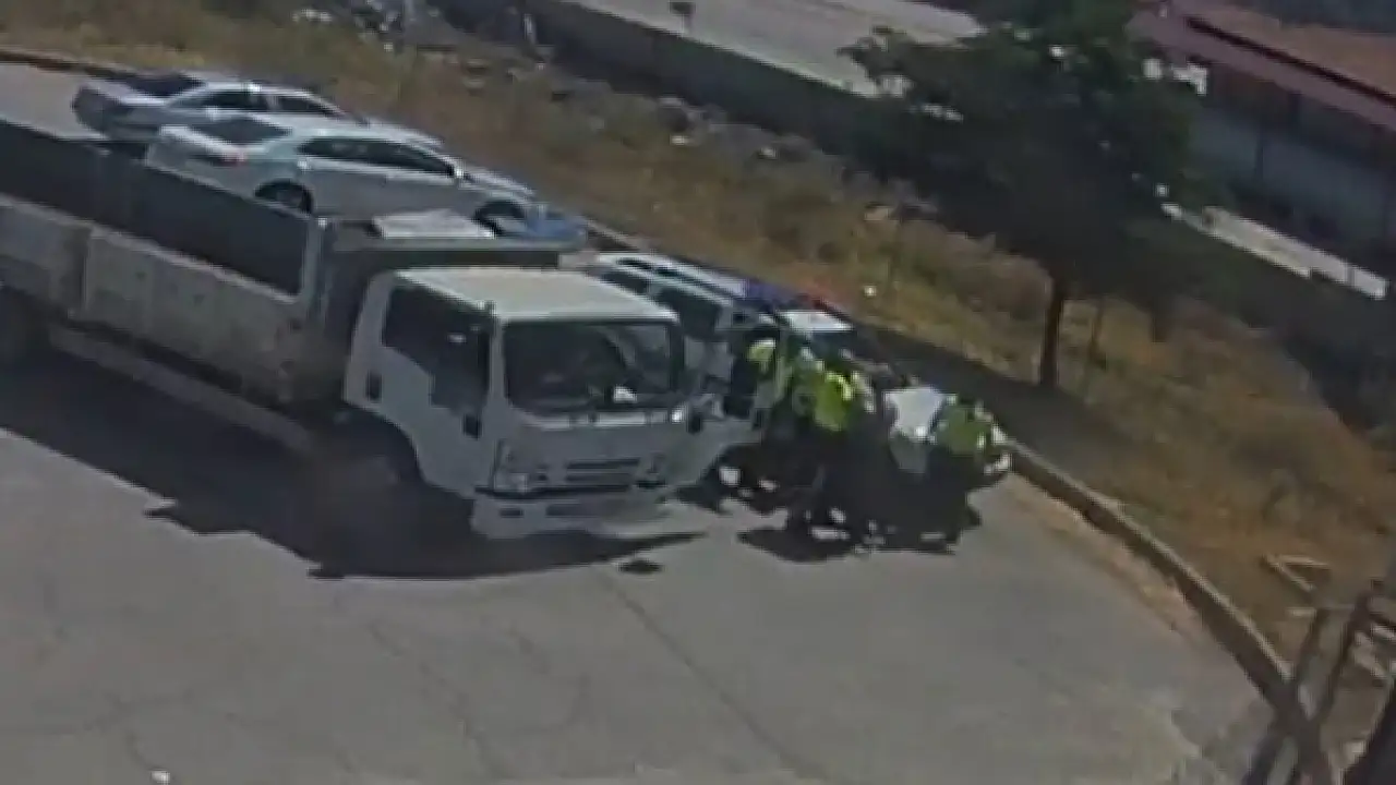GAZİANTEP'in Nurdağı ilçesinde, soluk borusuna fıstık kaçan sürücü Gültekin Sığırgüden (55), trafik istasyon amirliğine giderek yardım istedi. Ekipler, Heimlich manevrasıyla Sığırgüden'i kurtarırken, bu anlar güvenlik kamerasına yansıdı.