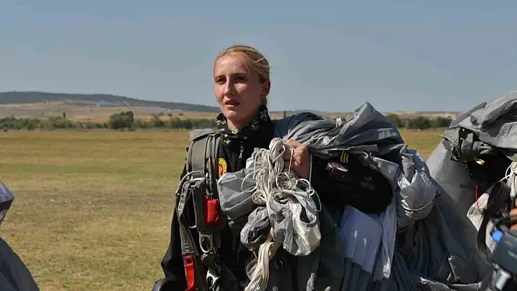 Eskişehir'de gerçekleştirilen THK Havacılık Festivali'nde paraşütle 10 bin feed yükseklikten atlayan Jandarma Genel Komutanlığı ve Türk Silahlı Kuvvetleri personelleri nefes kesen bir gösteriye imza attı.