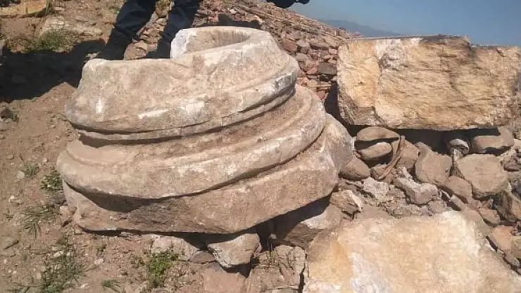 Aydın'ın Köşk ilçesinde nehir kenarına atılmış halde tarihi eser bulundu.