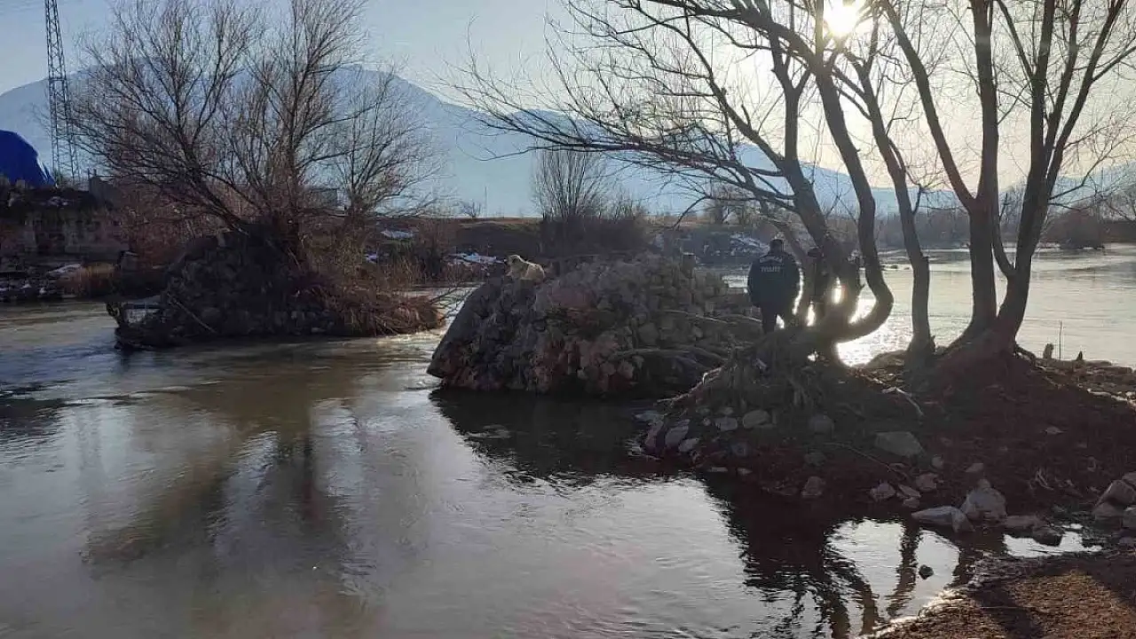 Erzincan'da Karasu nehrinde mahsur kalan köpek itfaiye ekiplerince kurtarıldı.