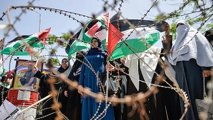 Yürüyüşe katılanlar, Filistin bayrakları ve üzerinde "dönüş hakkı" yazan siyah flamaların yanı sıra 1948'de göç ettirildikleri topraklarına dönmenin sembolü olan "maket anahtarlar" taşıdı.
