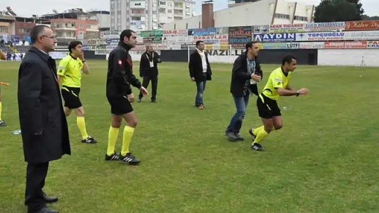 Karşılaşma sonrası Nazilli Belediyespor taraftarları hakemlere büyük tepki gösterirken sahay yabancı maddeler atıldı. Hakemler de polisin yardımıyla koşarak soyunma odasına gidebildi.