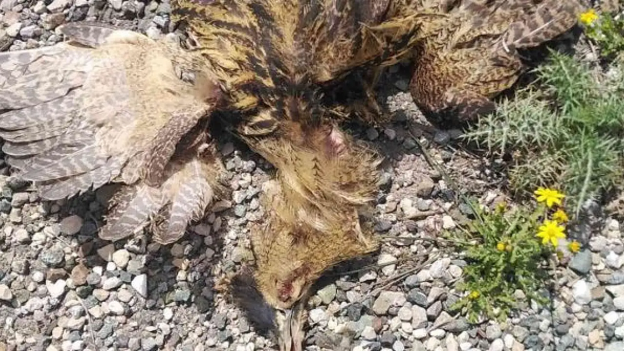 Adıyaman Kahta karayolu üzerinde şehirlerarası otobüsün çarptığı balaban kuşu telef oldu.