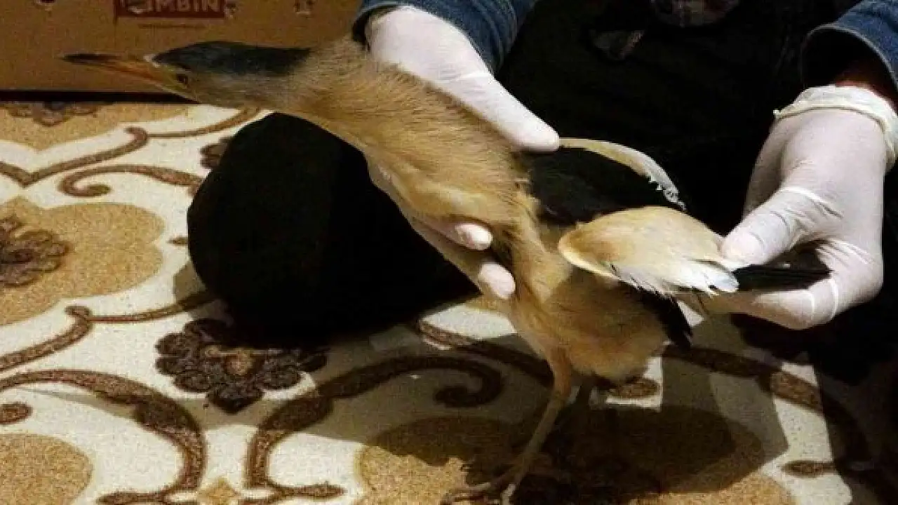 Hakkari'nin Yüksekova ilçesinde bir evin bahçesinde nesli tükenmekte olan 'balaban kuşu' bulundu.