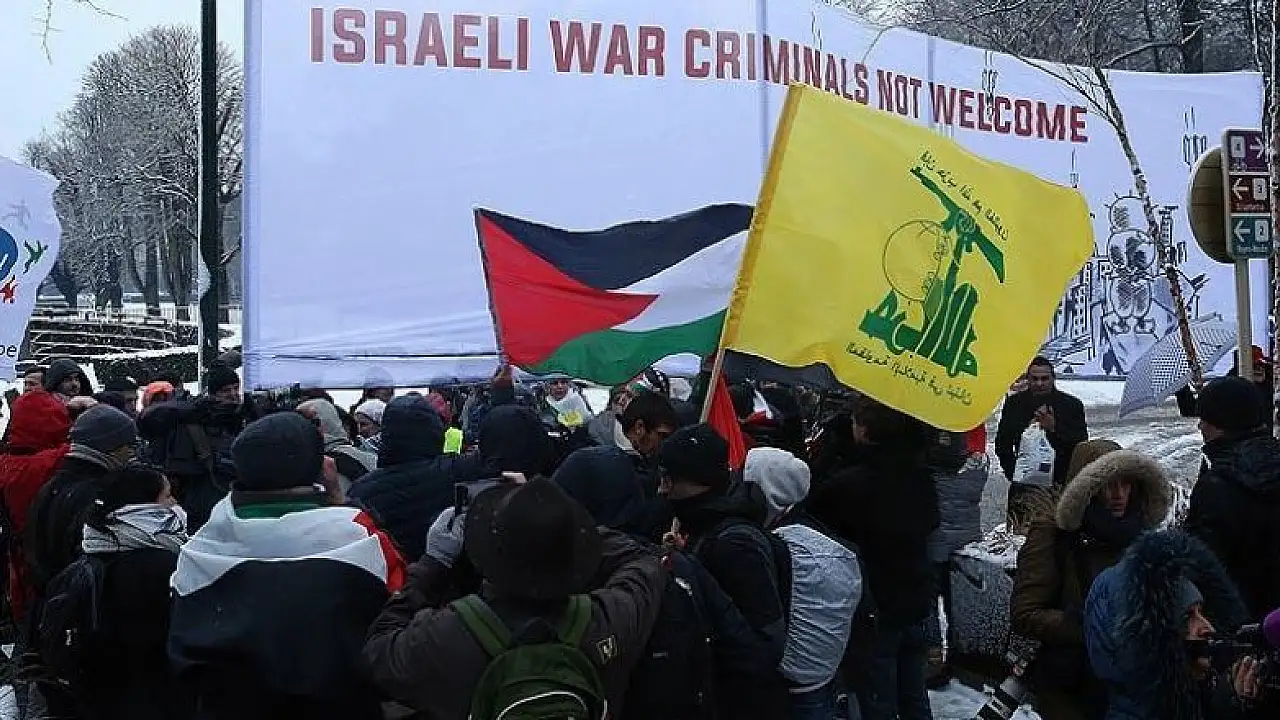 AB kurumlarının yakınındaki Schuman Meydanı'nda toplanan grup, "İsraili boykot ediyoruz" sloganı eşliğinde, "İsrail'i ABD'nin eyaleti yapın, Avrupa'nın değil", "İsrailli savaş suçlularını istemiyoruz" yazılı pankart ve afişler açtı.
