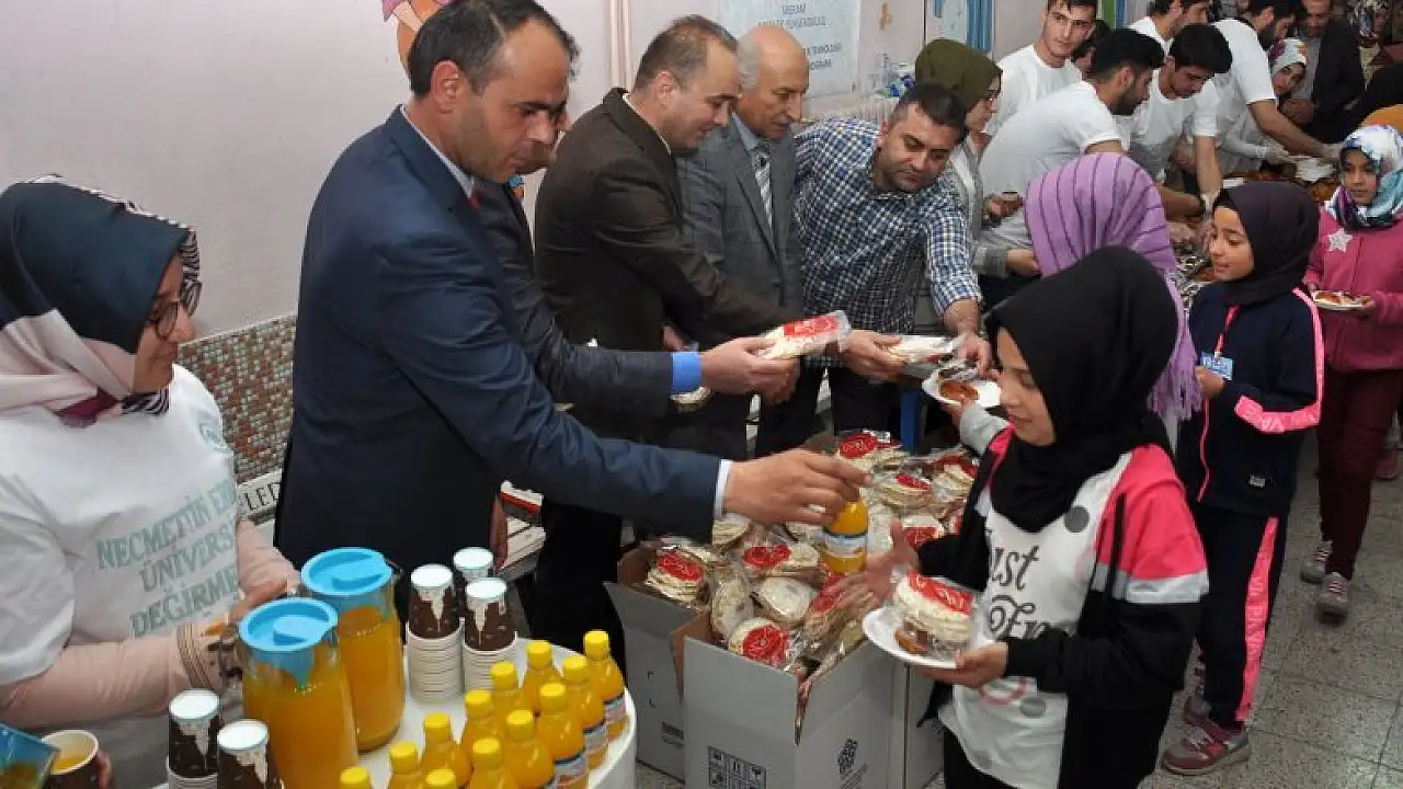 Daha sonra sözü alan NEÜ Rektör Yardımcısı Prof. Dr. Tahir Yüksek, daha önce aynı okulda üniversite olarak öğrencilerin dileklerini gerçekleştirdiklerini bugün de okul müdürü ve öğretmenlerin dileklerinin gerçekleştirildiğini ve öğrencilerin sağlıklı beslenme konusunda bilgilendirildiğini söyledi.