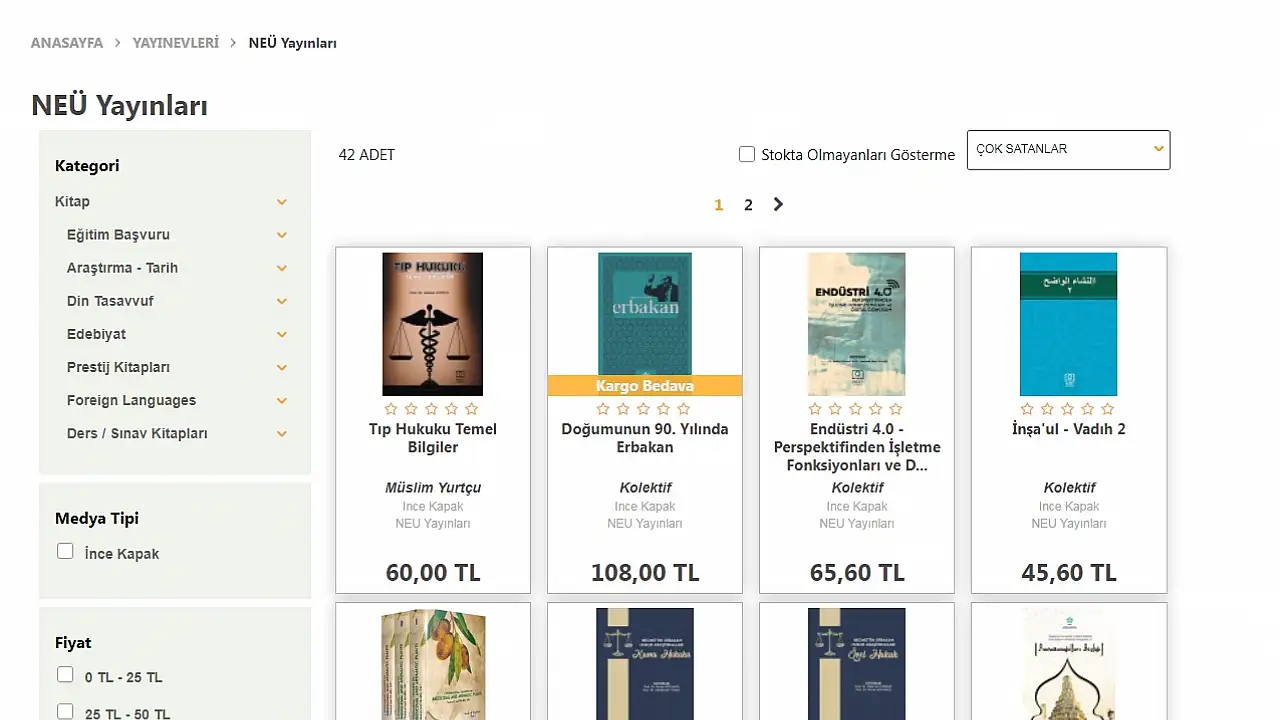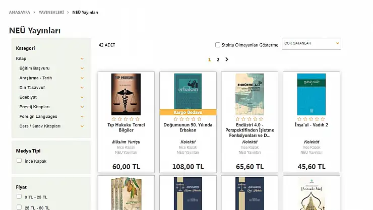 Türkiye’nin önde gelen kitap satış sitelerinden Kitapyurdu, D&R, İdefix’in yanı sıra Babil, İmge, BKM, Eren, Garantikitap gibi 84 ayrı internet kitap satış noktasında NEÜ Yayınları eserlerine ulaşılabiliyor.