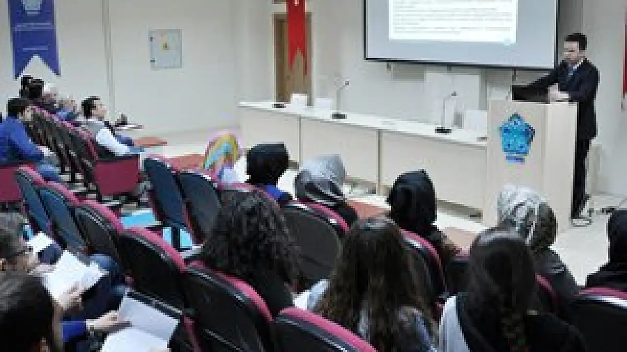 Mühendislik ve Mimarlık Fakültesi Konferans Salonundaki seminerde, Bilgisayar Mühendisliği Bölümü Öğretim Üyesi Yrd. Doç. Dr. Mehmet Hacıbeyoğlu katılımcıları bilgisayar, parola, web, e-posta ve mobil güvenliği ile yedekleme konusunda bilgilendirdi.