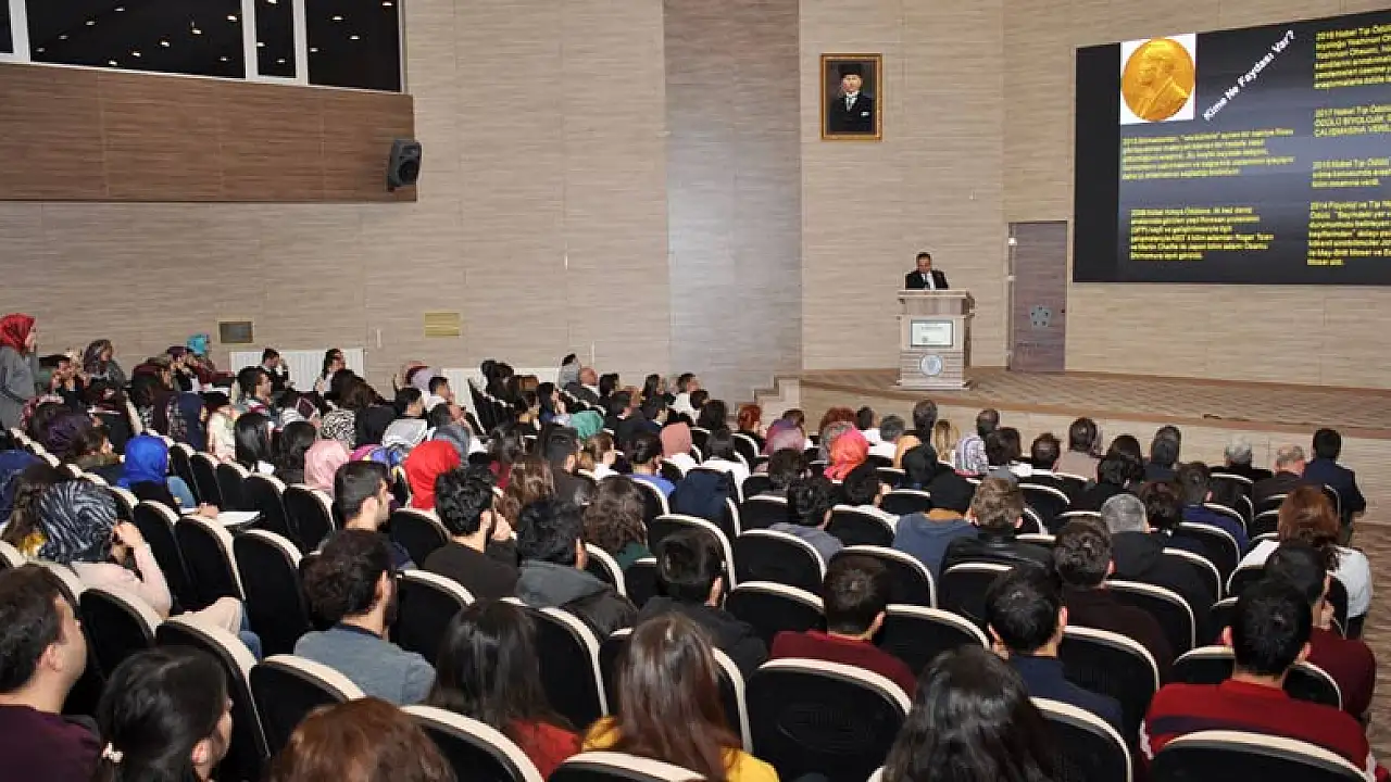 Türkiye Bilimler Akademisi Asli Üyesi ve Medipol Üniversitesi Tıp Fakültesi Öğretim Üyesi Prof. Dr. Ertuğrul Kılıç, Necmettin Erbakan Üniversitesinde (NEÜ) 'Türkiye'de Bilim ve Bilimsel Yayın Politikaları' adlı konferansa katıldı