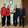 İsveç’in başkenti Goteborg’da düzenlenen Avrupa Salon Atletizm Şampiyonası’nda 60 metre engellide Türkiye rekoru kırarak altın madalya kazanan Nevin Yanıt, Genel Müdür Baykan’ı makamında ziyaret etti. Türkiye Atletizm Federasyonu Başkanı Mehmet Terzi ile Nevin Yanıt’ın başarılı antrenörü Cüneyt Yüksel’in de hazır bulunduğu ziyarette Nevin Yanıt, Baykan’a çiçek verdi.