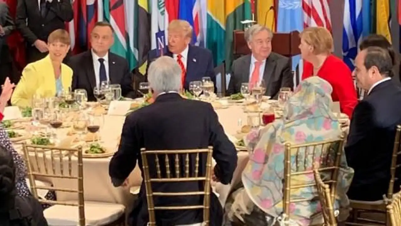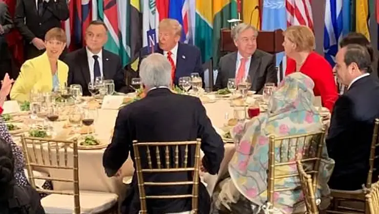 Yemek masasında Trump'ın yanı sıra BM Genel Sekreteri Antonio Guterres, Almanya Başbakanı Angela Merkel ve Polonya Cumhurbaşkanı Andrzej Duda da yer aldı.