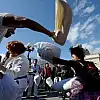 New York'ta Washington Meydanı'nda toplanan binlerce Amerikalı yastık savaşı yaptı.