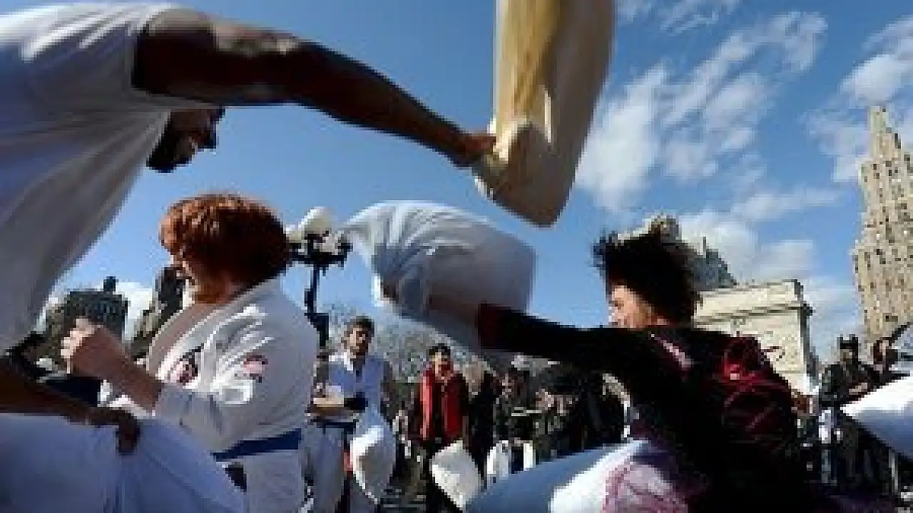 'Uluslararası Yastık Savaşı Günü' New York'ta kutlandı. Washington Meydanı'nda toplanan binlerce Amerikalı yastık savaşı yaptı.