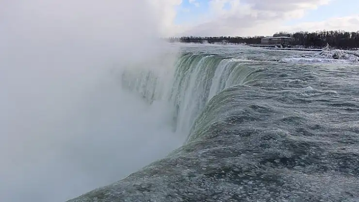 Şelaleye su taşıyan Niagara Nehri'nin yüzeyi buzlarla kaplanırken suyun düştüğü şelale yatağı da buzlardan görünmez hale geldi.