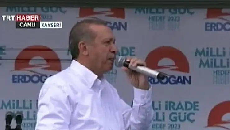 Cumhurbaşkanı adayı ve Başbakan Recep Tayyip Erdoğan, Kayseri'de Cumhuriyet Meydanı'nda halka hitap ediyor.