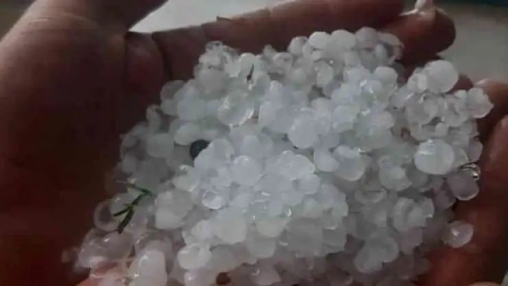 Çanakkale'nin Yenice ilçesine bağlı Kalkım beldesinde başlayan sağanak yağmurun ardından, nohut büyüklüğünde dolu yağdı.