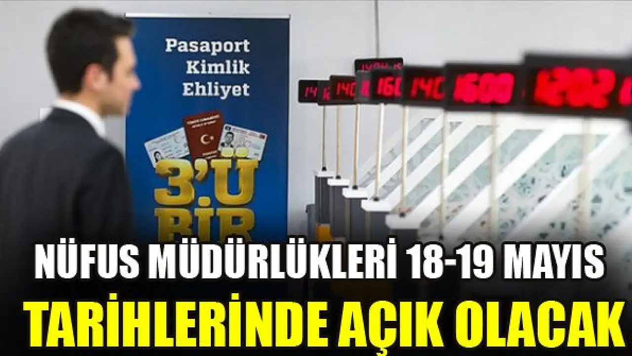 Nüfus müdürlükleri 18-19 Mayıs tarihlerinde açık olacak