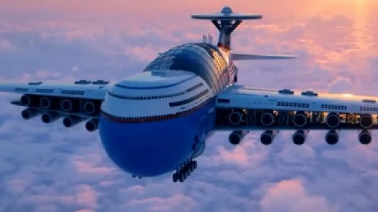 Yapay zeka yönetiminde ve nükleer enerjiyle çalışan 5 bin kişi kapasiteli iddialı bir uçan otel tasarımı paylaşıldı.