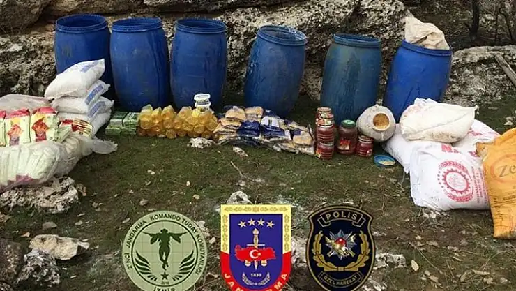 Sığınaklarda, 3 keskin nişancı tüfeği şarjörü, 90 fişek, roketatar ve bu silaha ait 4 mühimmat ve sevk fişeği, 3 el bombası, araç telsizi, 29 kilogram amonyum nitrat, patlayıcı tuzaklanmış büyük boy tüp, bir tondan fazla gıda maddesi, giyim ile çeşitli örgütsel dokümanlar ele geçirildi.