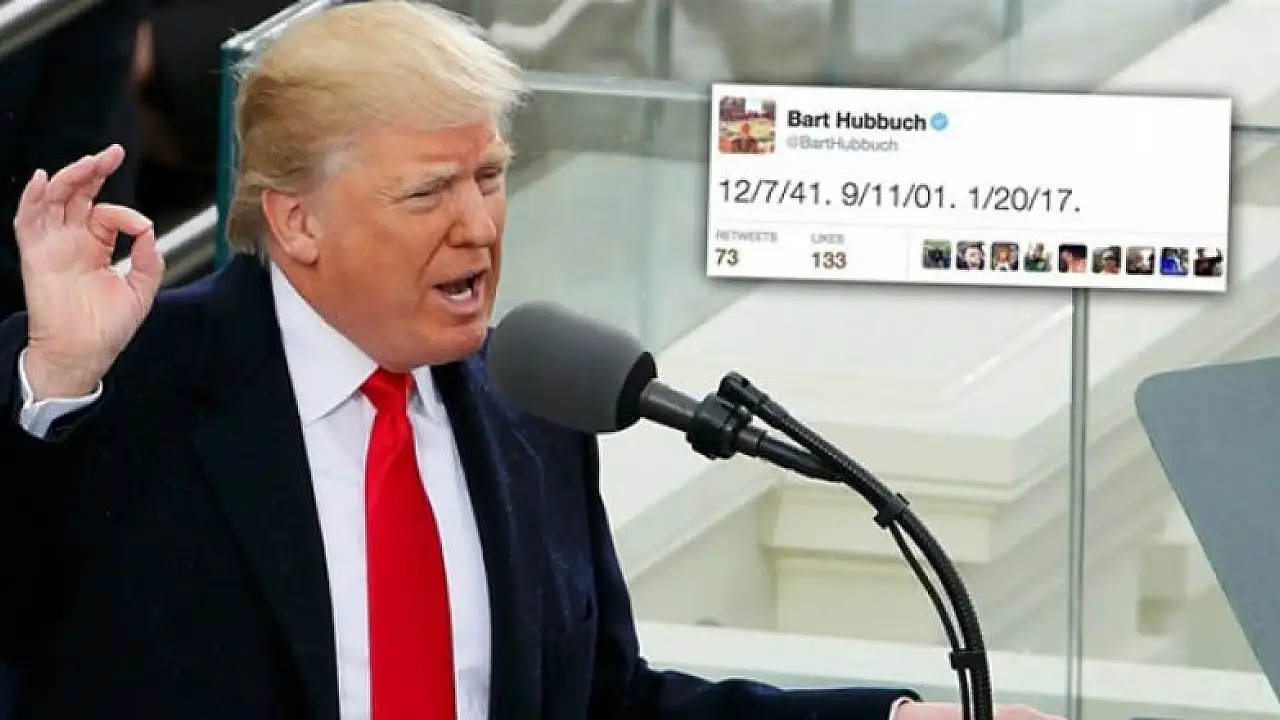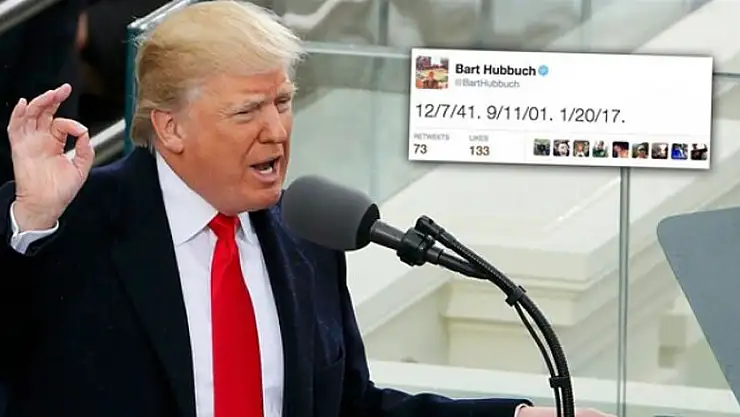 Gazete yazarı, ABD tarihine kara günler olarak geçen Pearl Harbor vakası, 11 Eylül saldırısı ve Trump'ın resmen göreve başladığını günün tarihlerini aynı 'tweet' üzerinden paylaştı.