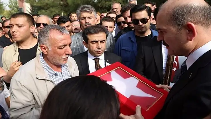Diyarbakır'da uğradığı silahlı saldırı sonucu şehit olan Jandarma Onbaşı Bilal Dicle, son yolculuğuna uğurlandı. İçişleri Bakanı Soylu, baba Adnan Dicle'ye, Türk bayrağı verdi.