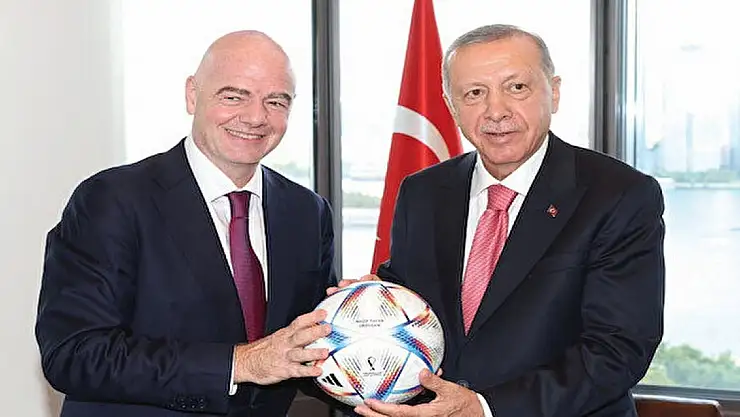 Cumhurbaşkanı Erdoğan, New York’taki temasları kapsamında FIFA Başkanı Gianni Infantino'yu kabul etti. FIFA Başkanı Infantino, kabulde Cumhurbaşkanı Erdoğan'a, üzerinde isminin yazılı olduğu, Katar'da yapılacak FIFA 2022 Dünya Kupası resmi topunu hediye etti. Infantino, bu toptan sadece bir tane üretildiğini söyledi. Topu alan Cumhurbaşkanı Erdoğan, "Başka yok yani. Üzerinde Recep Tayyip Erdoğan yazıyor" diyerek yazıyı kameralara gösterdi.