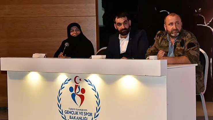 Gençlik ve Spor Bakanlığının "Tecrübe Konuşuyor İçimizdeki Kahramanlar Projesi" kapsamında, İl Kültür ve Turizm Müdürlüğü Toplantı Salonu'nda sanatçı İsmail Hakkı'nın moderatörlüğündeki programda, Kur'an-ı Kerim tilavetinin ardından Veysel Çelikdemir'in "15 Temmuz" temalı kum sanatı gösterisine yer verildi.