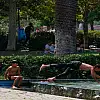 Aydın'da da bunaltan hava nedeniyle dışarıda bulunan vatandaşlar, gölgelik alanlarda dinlenmeyi tercih etti.