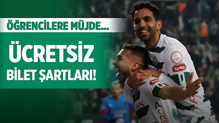 Öğrencilere bilet müjdesi. TÜMOSAN Konyaspor-Trabzonspor maçına kısa bir süre kala Konya Teknik Üniversitesi personel ve öğrencilerine özel ücretsiz maç bileti vereceğini sosyal medya üzerinden paylaştı. 3 Nisan'daki zorlu 90 dakika öncesinde yeşil beyazlılara destek vermek isteyen öğrenciler 29 Mart Cuma günü 11:30'a kadar üniversitenin formunu doldurması gerekecek.