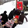 Rize'de kar nedeniyle ulaşım sağlanamayan köyde rahatsızlanan 70 yaşındaki obezite hastası Faziye Ergün, sağlık ekipleri ve köylüler tarafından kar paletli ambulansa taşınarak hastaneye kaldırıldı.