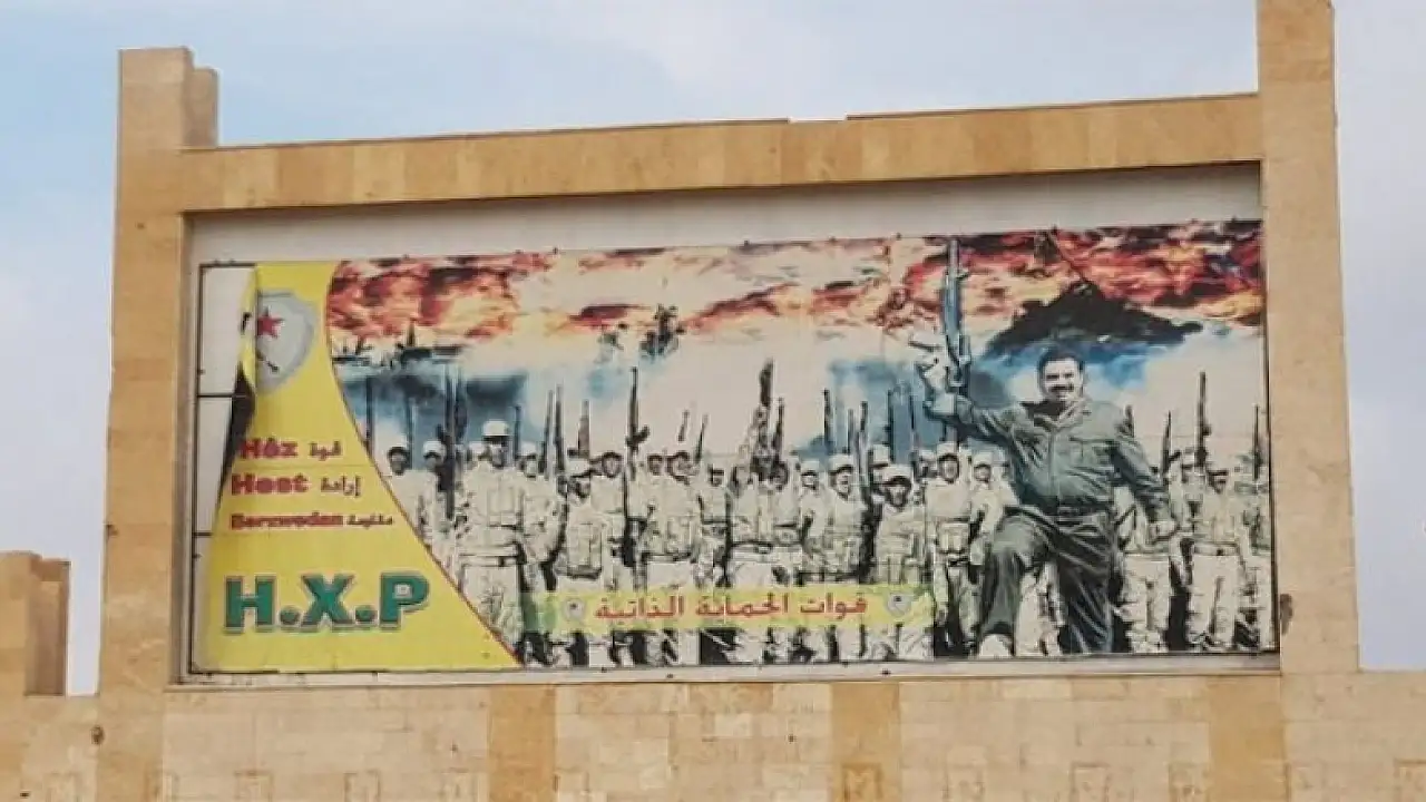 Terör örgütü PKK'nın Suriye'deki uzantısı YPG, Haseke'de PKK elebaşı Öcalan'ın posterlerini astı.