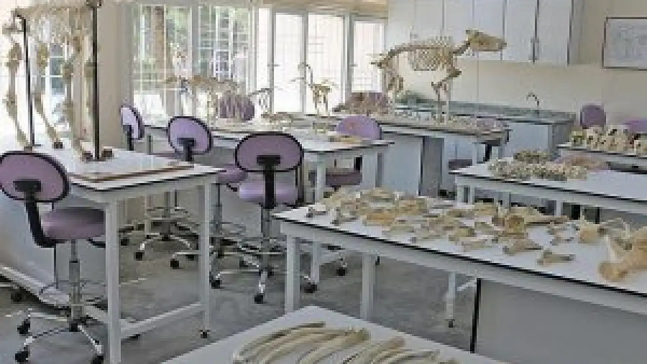 Öğrencilerin buldukları buzağı, eşek, domuz, kedi, köpek ve bıldırcın gibi hayvanlara ait kemikleri birleştirerek oluşturdukları 15 iskelet ile yüzlerce kemiğin inceleme amaçlı yer aldığı laboratuvar, veteriner eğitimine önemli katkılar sunuyor.