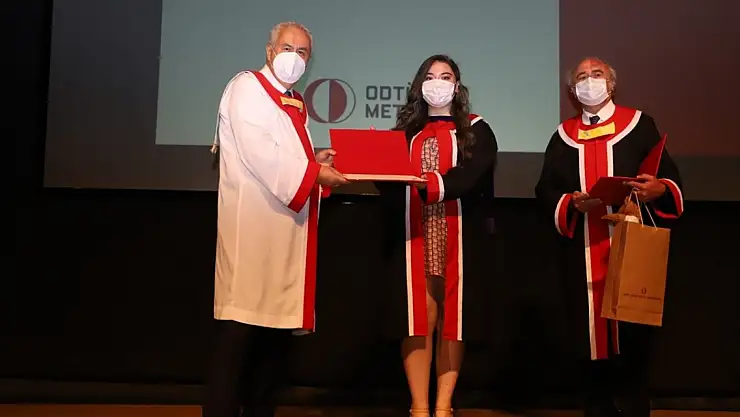 ODTÜ birinci, ikinci ve üçüncüleri, derece sertifikalarıyla birlikte diploma ve hediyelerini Prof. Dr. Kök ile bağlı bulundukları fakülte dekanlarının elinden aldı.