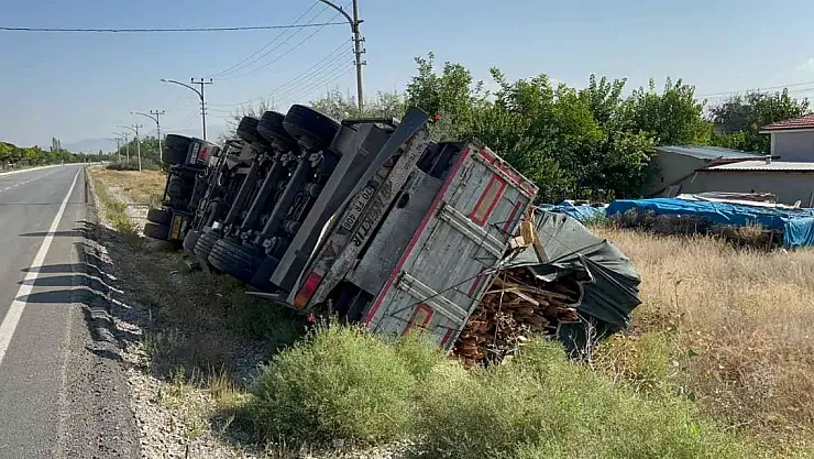 Afyonkarahisar'da kontrolden çıkan odun yüklü tırın devrilmesi sonucu 1 kişi yaralandı.