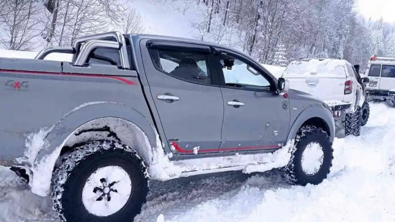 Düzce'de etkili olan yağış sonrasında 1,5 metre karda safari yapan offroad tutkunları, karla kaplı yolları açarken adrenalin dolu anlar yaşadılar.