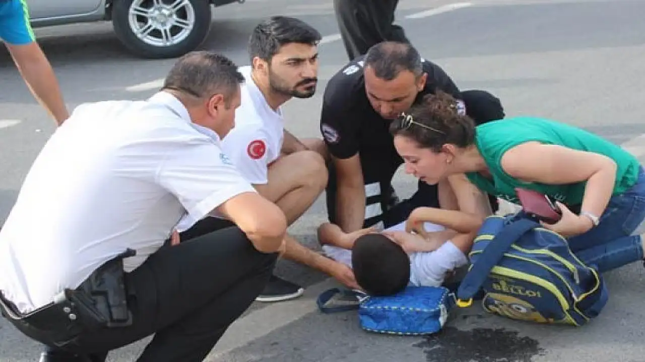 Çarpmanın şiddetiyle yola savrulan ve başında kanama olan çocuğa ilk müdahaleyi motorize polis ekibi ve vatandaşlar yaptı.