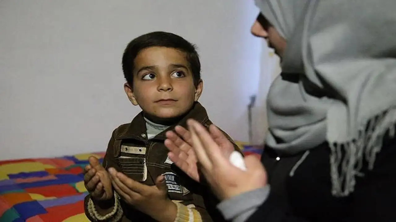 Suriye'nin İdlib kentinde rejime ait savaş uçaklarının attığı varil bombası nedeniyle kulaklarında işitme sorunu oluşan 9 yaşındaki Muhammed Ahmet'in annesi, çocuğunun yeniden duyup, okula gitmesini istiyor.